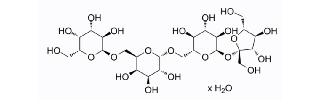 蜜二糖一水(Melibiose)是由1分子D-半乳糖与1分子D-葡萄糖通过α-1,6-糖苷键连接而成的还原性二糖,其水溶液具有右旋光性。蜜二糖一水的天然产物是棉子糖的组成结构单元,在自然界中其主要来源于甜菜、棉籽及部分豆科植物中。