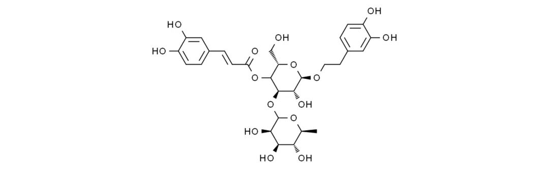 毛蕊花糖苷(Acteoside)是一种水溶性的苯乙醇苷类化合物,具有邻苯-酚羟基结构导致化学稳定性较差,在碱性环境下降解速率显著加快。天然的毛蕊花糖苷来源于多种药用植物中,特别是在列当科植物(如肉苁蓉)、地黄、连翘以及大叶紫珠等植物中含量较高,并且该化合物表现出抗氧化、抗肿瘤、神经保护等多重药理活性。